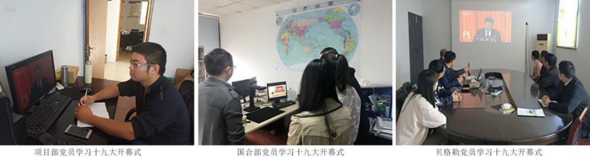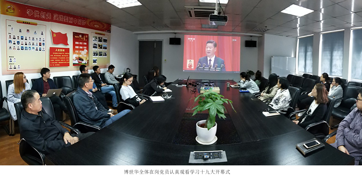 博世華全體黨員在會(huì)議室準(zhǔn)時(shí)觀看了十九大開幕式,因工作原因未能出席的員工也在項(xiàng)目現(xiàn)場(chǎng)或以其他方式準(zhǔn)時(shí)收看學(xué)習(xí)。