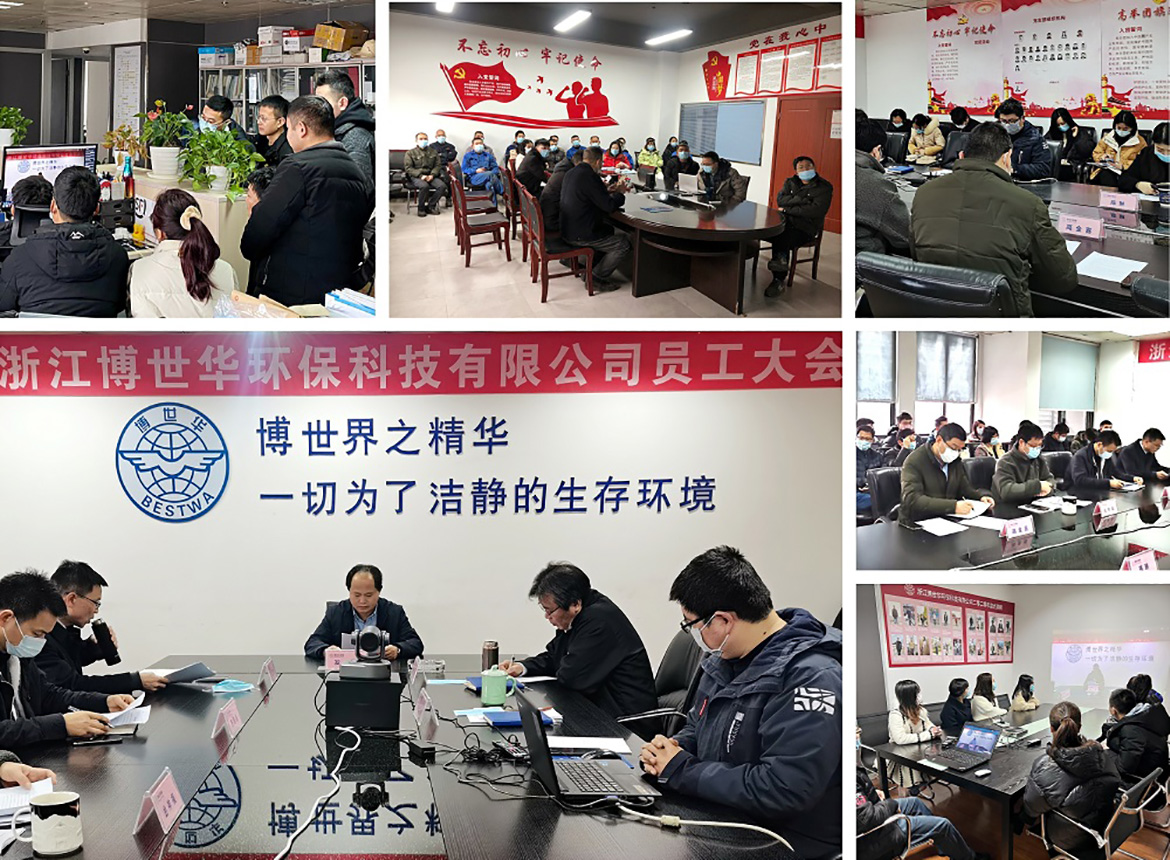 金牛辭歲寒風盡,白虎迎春喜氣來。2022年1月25日上午,浙江博世華環保科技有限公司2021年度員工大會圓滿召開。因疫情防控需要,本次會議采取線上直播的形式,由總經理王衛民主持。