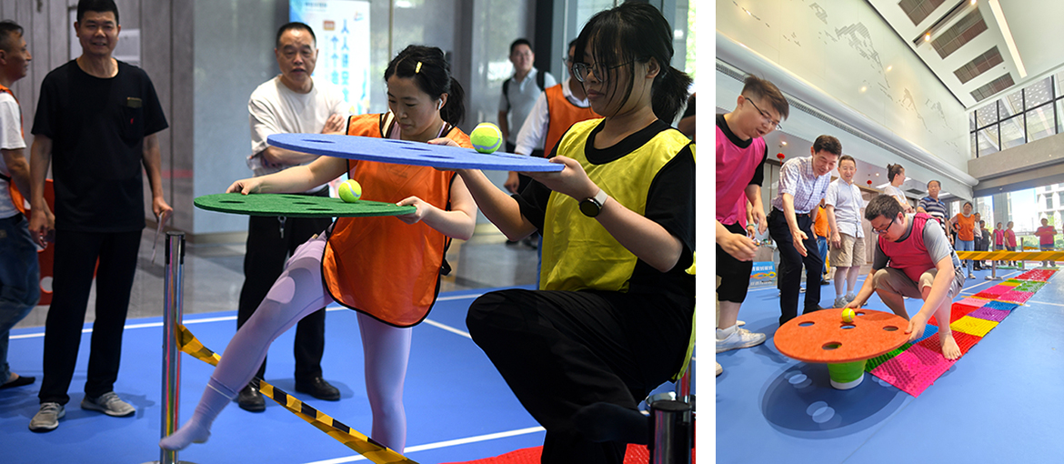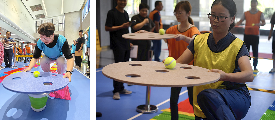 這是一項(xiàng)平衡能力與速度的比拼,每位選手你追我趕,現(xiàn)場氣氛熱烈,助威聲此起彼伏。